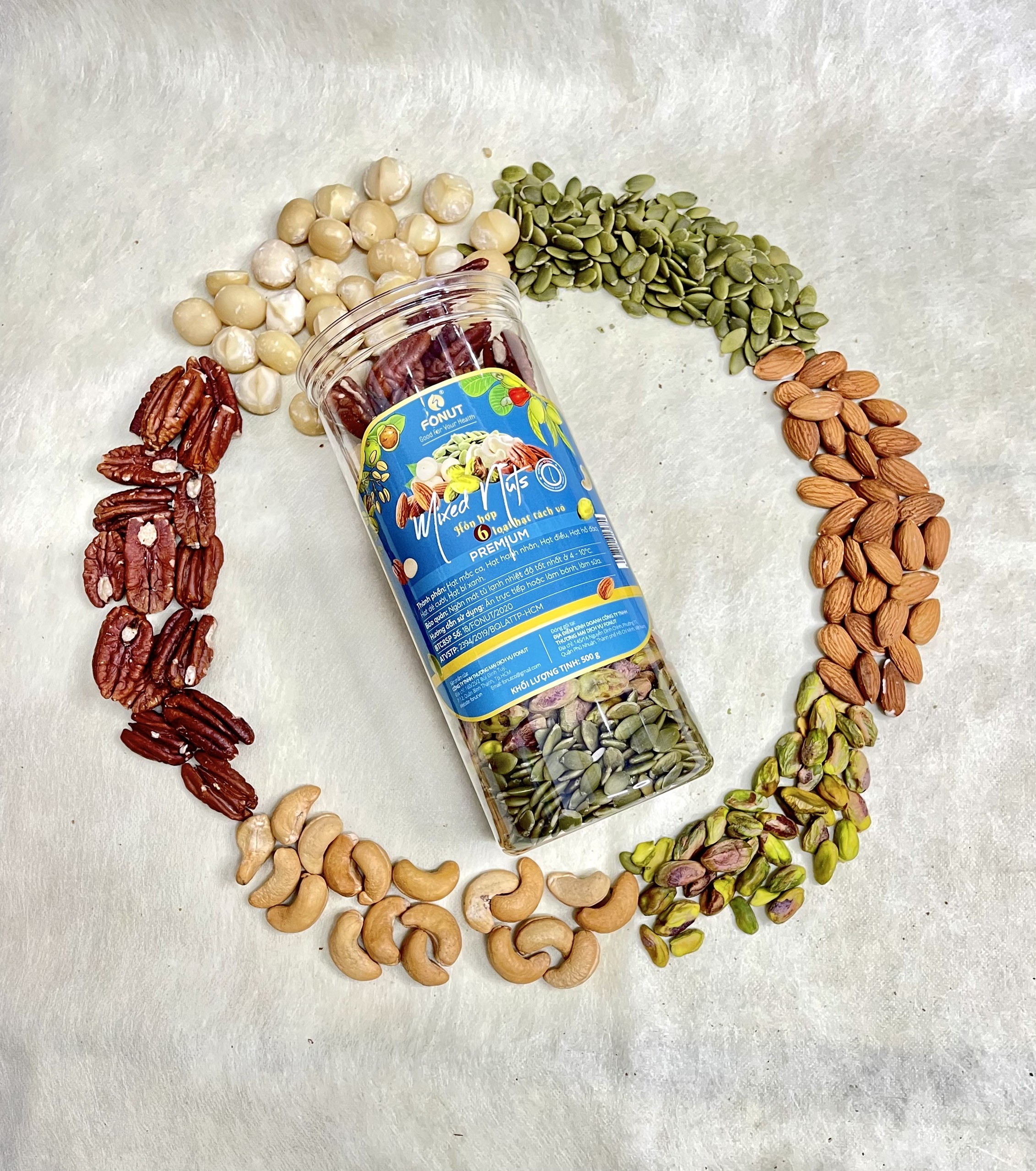 ✨Hỗn hợp Mixed Nuts 6 loại hạt tách vỏ Fonut Hũ 500g ( hạt bí,hạt hồ đào, hạnh nhân,mắc ca,điều,dẻ cười)