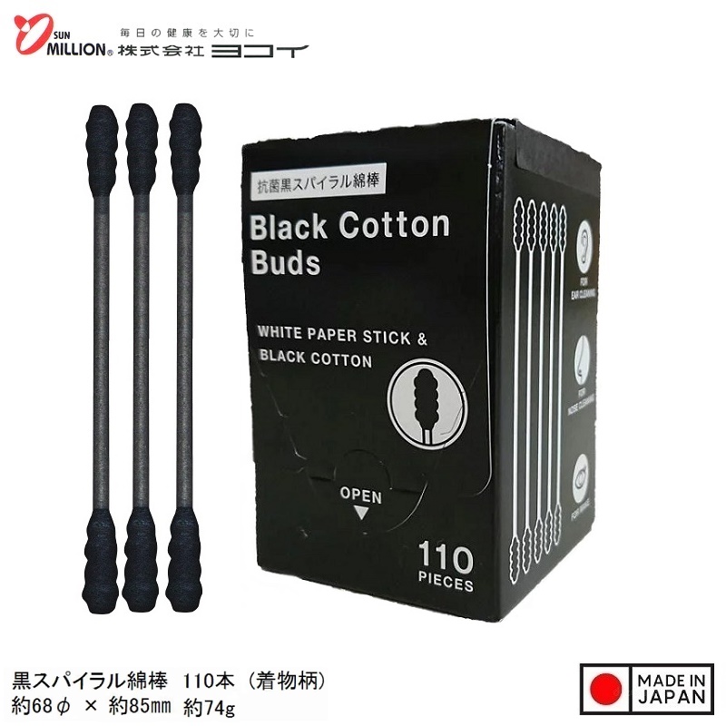 ✨Hộp 110 tăm bông kháng khuẩn than hoạt tính Sanritsu- Black - Hàng Nội Địa Nhật Bản