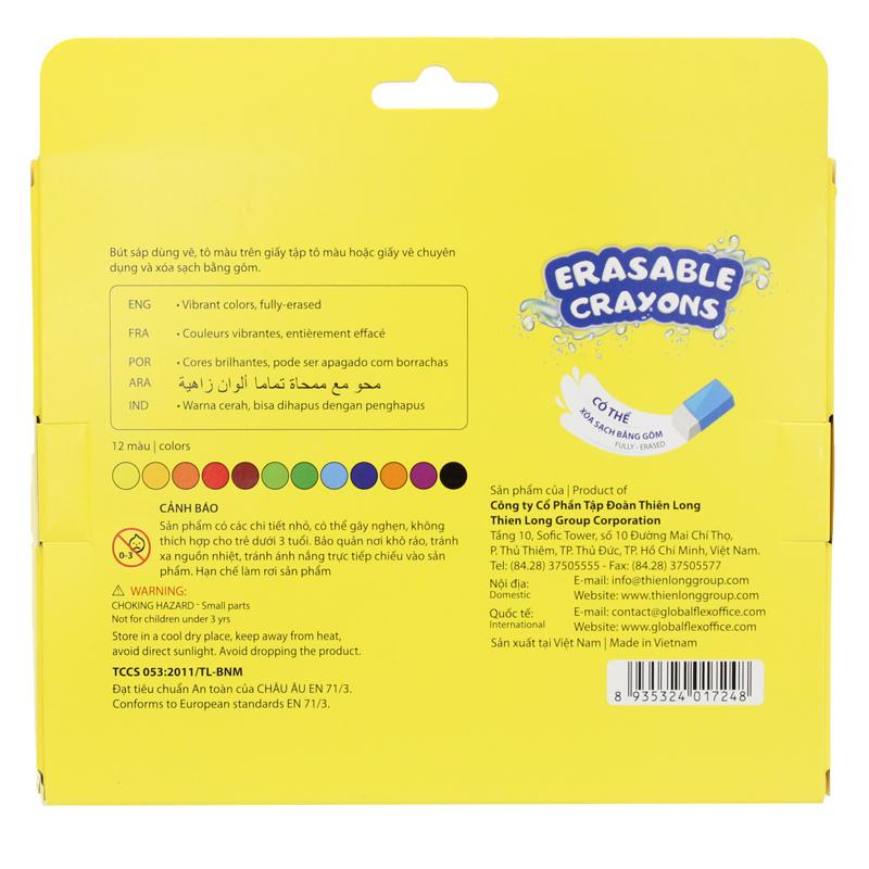 Sản phẩm gồm 12 bút sáp màu khác nhau thích hợp cho trẻ em khi bắt đầu tập tô màu.