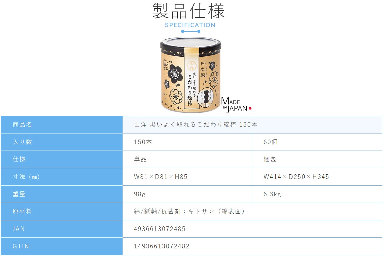 Hộp 150 tăm bông ngoáy tai than hoạt tính Sanyo, 100% bông gòn tự nhiên mềm mại không gây đau rát khi sử dụng - nội địa Nhật Bản Kích thước: W81×D81×85Hcm Trọng lượng: 98g Kiểu dáng