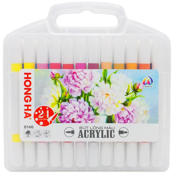 Hộp 24 Bút Lông Màu Acrylic 2 Đầu - Hồng Hà 8146 phù hợp cho mọi đối tượng từ học sinh đến người vẽ chuyên nghiệp.