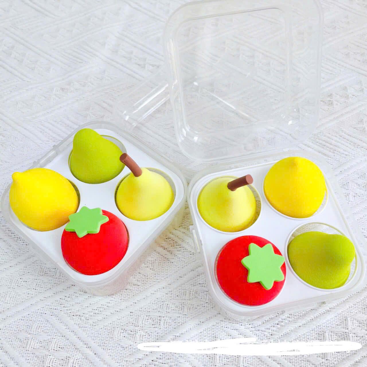 ✨Hộp bông tán phấn trang điểm 4 món hình trái cây xinh xắn nhiều màu , có hộp đựng siêu đáng yêu cute