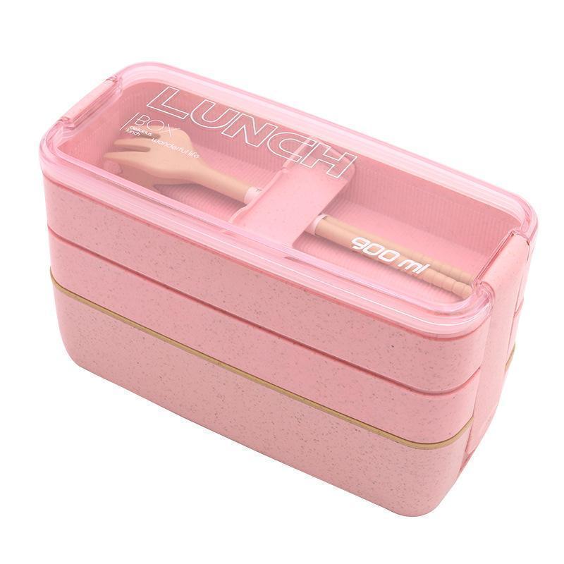 Hộp Cơm 3 Tầng Lúa Mạch Lunch Box Có Sẵn Đũa, Muỗng, Nĩa - 8768