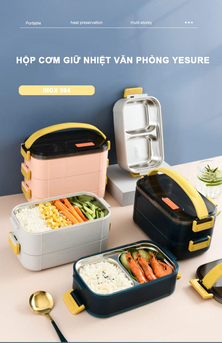 Hộp cơm giữ nhiệt văn phòng YESURE 1200ml Hai Tầng có ngăn Inox Tháo rời dễ dàng cho vào lò Vi Sóng Một số thông tin sản phẩm: Hộp cơm được làm chủ yếu chất liệu Inox 304 an toàn Giữ chất lượng thực phẩm như ban đầu Sức chứa cải thiện giúp chứa đựng nhiều thực phẩm hơn Nhiều màu sắc và kích cỡ 1200ml 2 tầng. Hình ảnh và thông tin chi tiết sản phẩm: