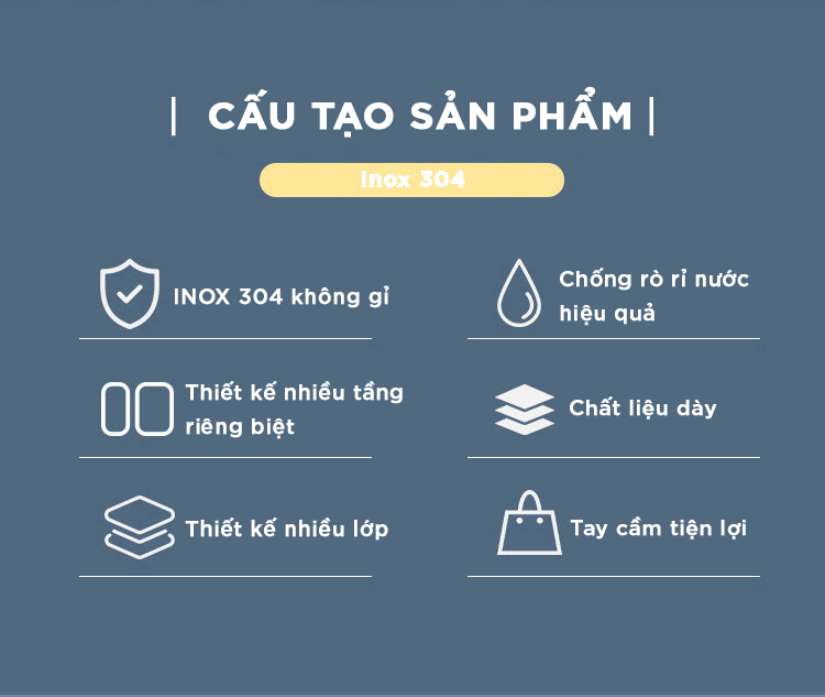 Thông tin sản phẩm Hộp cơm giữ nhiệt 3 tầng 3 khay: Cấu tạo: - 1 hộp trụ, với 3 khay riêng biệt bên trong, chia làm 3 lớp/tầng - Phần thân cấu tạo bởi