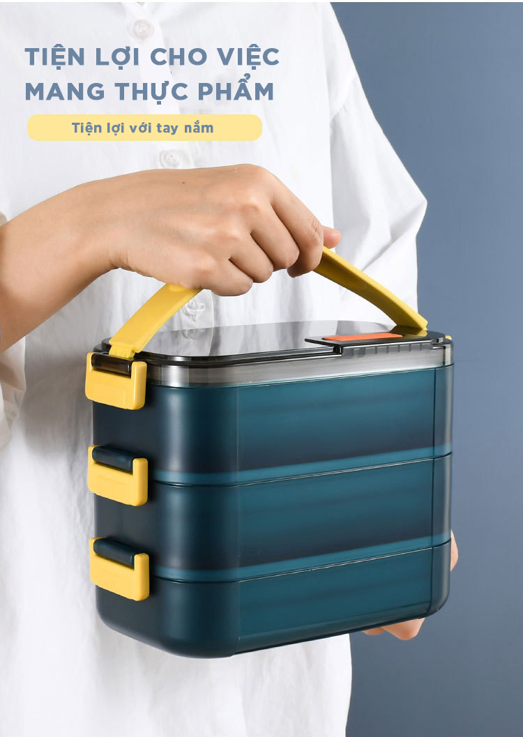 Bộ hộp cơm giữ nhiệt văn phòng cao cấp inox Cặp lồng cơm 3 tầng cắm điện Chính hãng D Danido An toàn cho đồ ăn nóng, không bị phản ứng phụ Phân loại màu