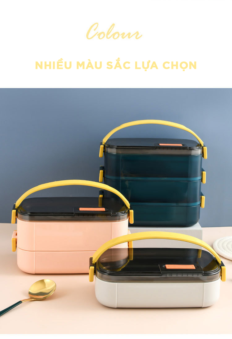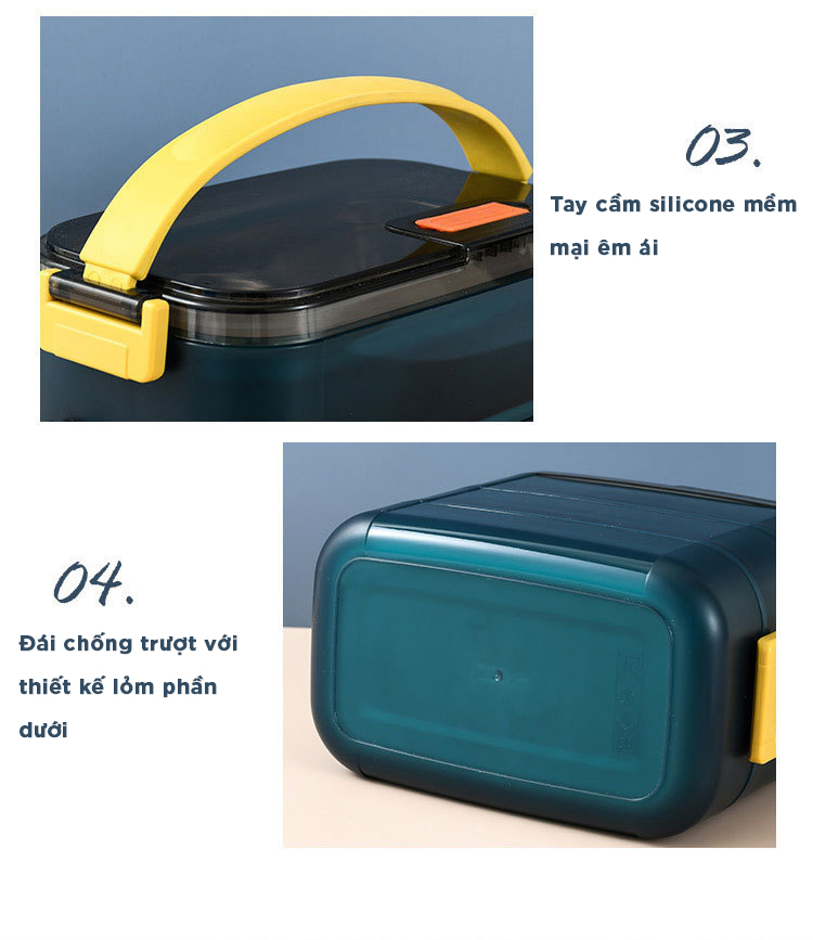 ĐẶC ĐIỂM NỔI BẬT - Hộp có dung tích 1000ml chia 3 ngăn, phân biệt từng món thuận tiện, thoải mái đựng cơm và thức ăn mang đi học, đi làm. - Làm bằng chất