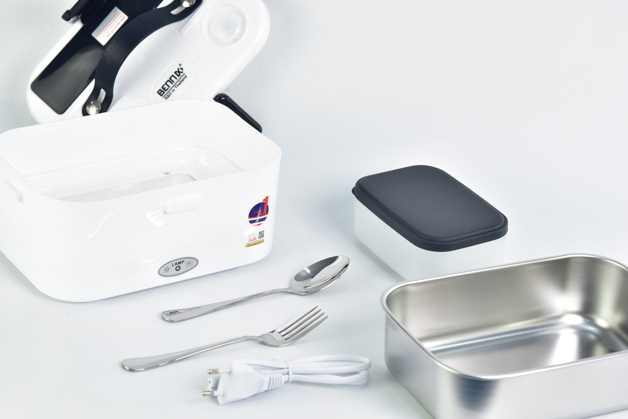 Hộp cơm cắm điện văn phòng Bennix khay inox 304 - Bảo hành 2 năm