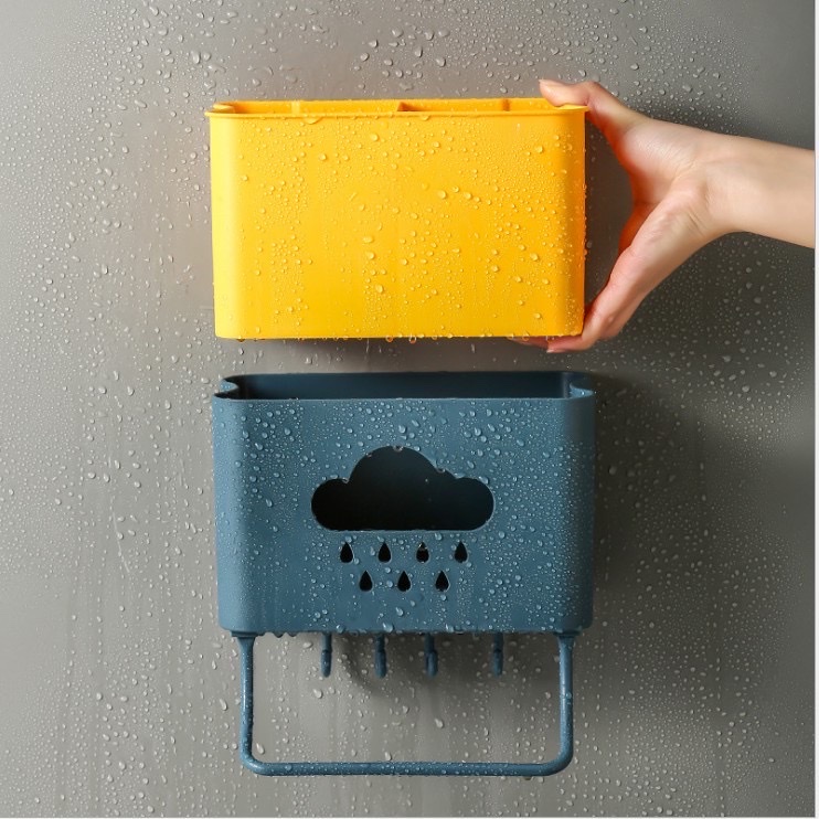 Hộp đựng đũa muỗng treo tường hình đám mây kèm móc treo khăn dụng cụ bếp tiện lợi, hộp đũa muỗng cán lúa mạch
