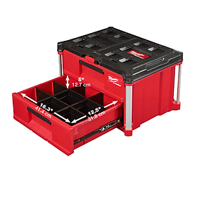 Thùng đựng dụng cụ 2 ngăn Milwaukee 48-22-8442 có kích thước 561 mm x 409 mm x 340 mm. Thùng được làm từ nhựa chống va đập, có các góc được gia cố bằng kim loại để tăng độ bền và chịu lực. Thùng có hai ngăn kéo rộng rãi, có rãnh trượt ổ bi có định mức 11.4 kg, cho phép mở và đóng ngăn kéo một cách nhẹ nhàng và êm ái. Mỗi ngăn kéo có các bộ chia ngăn kéo điều chỉnh nhanh, cho phép người dùng tùy chỉnh bố cục ngăn kéo cho các công cụ và phụ kiện của họ. Thùng còn có khóa thanh bảo vệ, chặn ngăn kéo khỏi mở ra trong quá trình vận chuyển, và cho phép người dùng khóa các ngăn kéo bằng ổ khóa.
