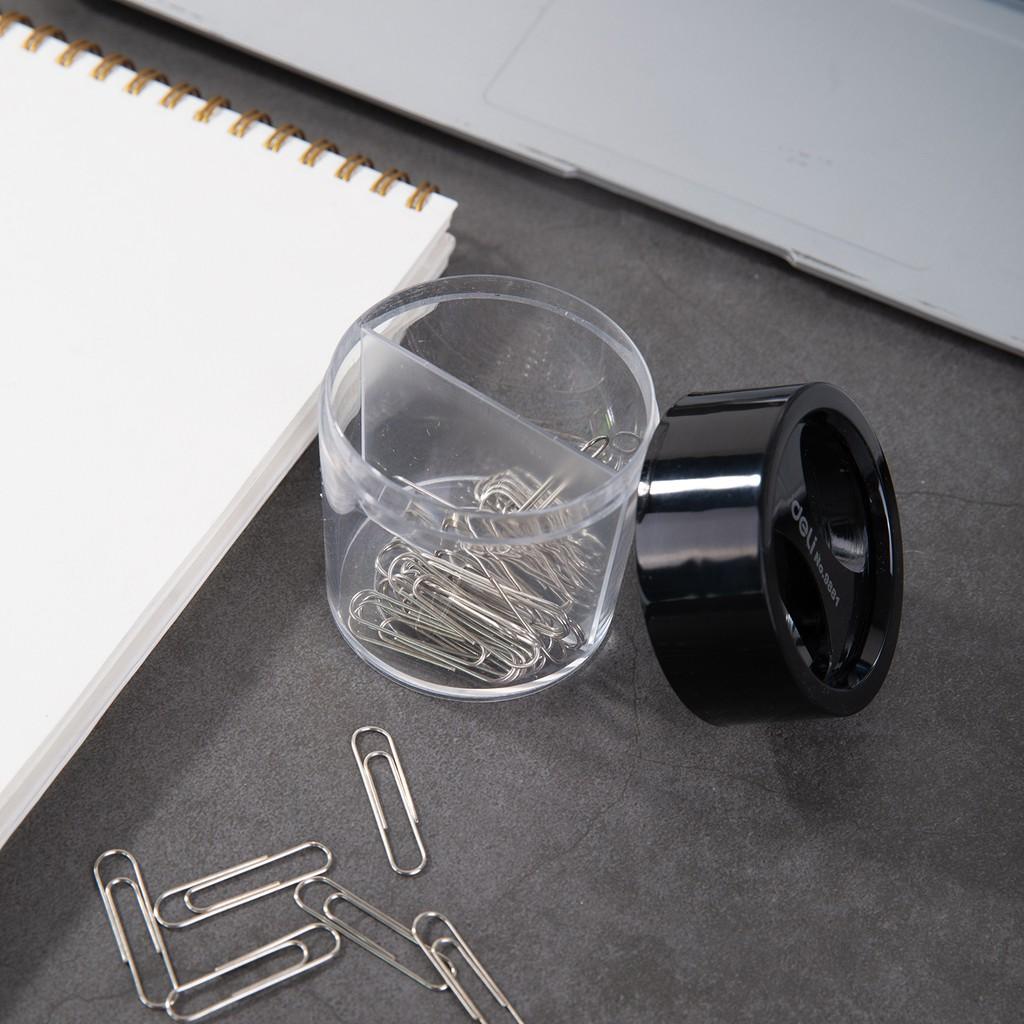 Hộp đựng ghim φ58*75MM Deli TÍNH NĂNG SẢN PHẨM: ️Thiết kế từ tính trên cùng để dễ dàng lưu trữ các kẹp giấy, sử dụng tiện lợi ️Tách các kẹp giấy khác nhau, dễ dàng