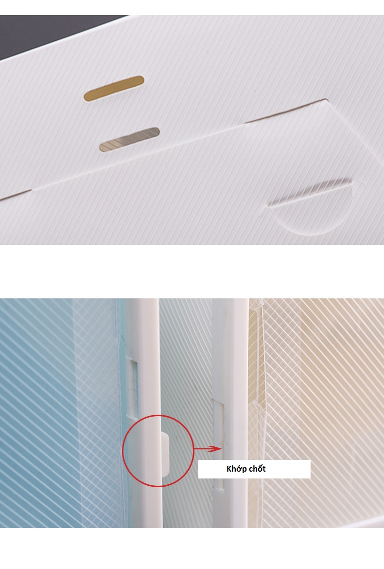 -Thiết kế dạng nắp đóng mở dễ dàng lấy đồ, màu sắc bằng nhựa trong giúp bạn dễ dàng tìm kiếm món đồ