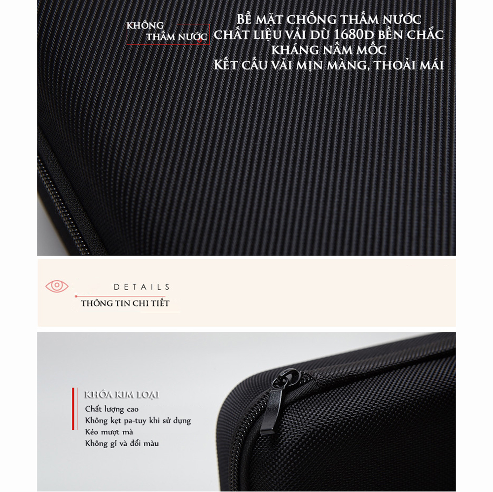 Mua tại TiktokHộp Đựng Tai Nghe, Cáp Sạc, Pin Sạc Dự Phòng, Ổ Cứng giúp bảo vệ phụ kiện di động / laptop Mai Lee - Hàng chính hãng Kích thước Hộp đựng lớn 17x12x6.5cm phù hợp với chứa cáp sạc điện thoại hay thậm chí phụ kiện cho laptop (macbook,...) Dễ dàng chứa tất cả phụ kiện cần thiết cho chuyến đi của bạn Tránh thất lạc những món đồ yêu quý của bạn Thiết kế thực dụng và đơn giản, cùng với chất liệu cao cấp Vải dù 1680D chống thấm nước, chống mòn, cũng như chống nấm mốc Hộp cứng cáp, không mềm Pa-tuy kéo mượt mà, nhẹ nhàng Thiết kế có ngăn lưới bảo quản các món đồ dễ vỡ, chống sốc