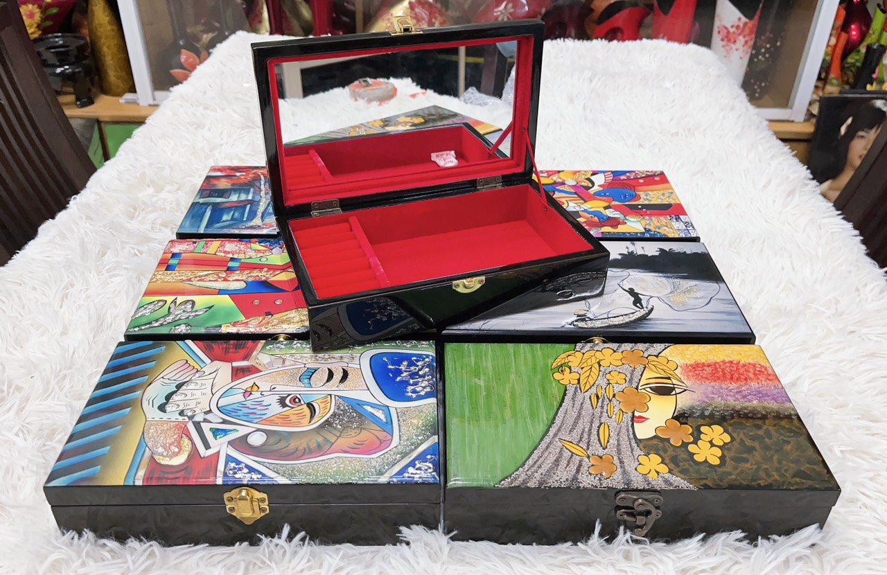 ✨Hộp nữ trang Sơn Mài Cao Cấp Thanh Bình Lê size 14x24x6 cm đựng đồ trang sức, vật dụng nhỏ xinh, trang trí, làm quà tặng ý nghĩa