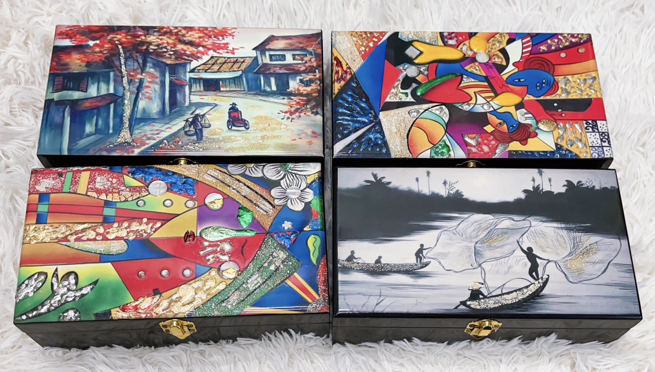 ✨Hộp nữ trang Sơn Mài Cao Cấp Thanh Bình Lê size 14x24x6 cm đựng đồ trang sức, vật dụng nhỏ xinh, trang trí, làm quà tặng ý nghĩa
