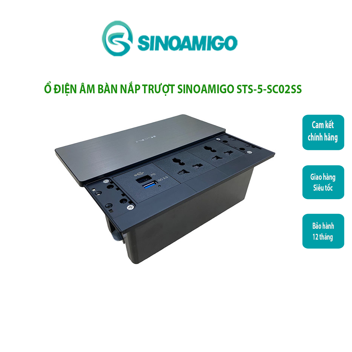 Trong thế giới công nghiệp ngày nay, không gian làm việc đòi hỏi sự linh hoạt và tiện ích cao. Sinoamigo tự hào giới thiệu đến bạn một giải pháp tiện lợi - Hộp ổ cắm âm bàn nắp trượt Sinoamigo STS-5-SC02SS. Được thiết kế lắp âm mặt bàn cho văn phòng, phòng họp, bàn làm việc, phòng hội nghị. STS-5-SC02SS không chỉ là sự nâng cấp mà còn là biểu tượng của sự đổi mới.