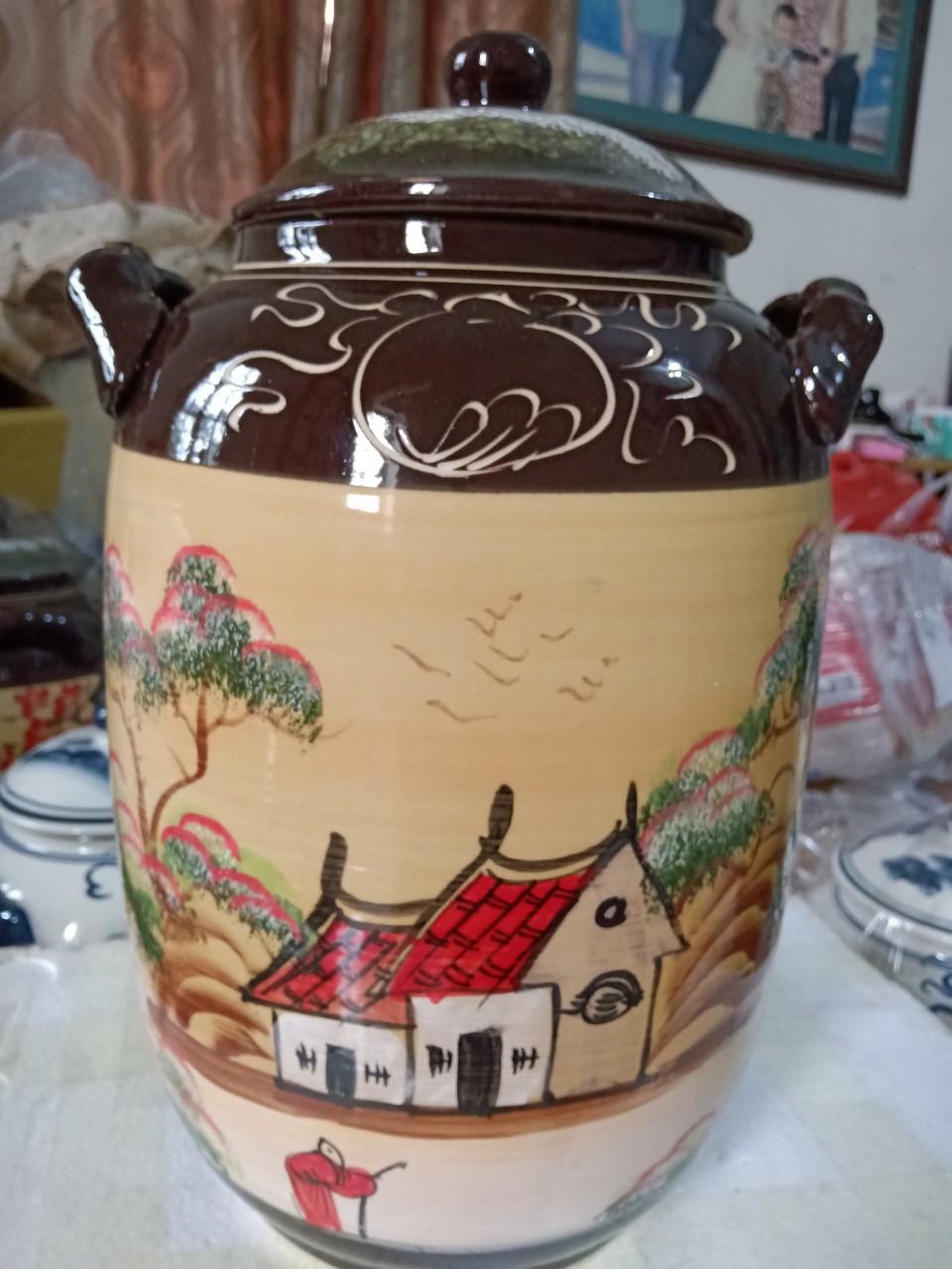 ✨Hũ đựng rượu gạo gốm sứ Bát Tràng vẽ phong cảnh loại 30L