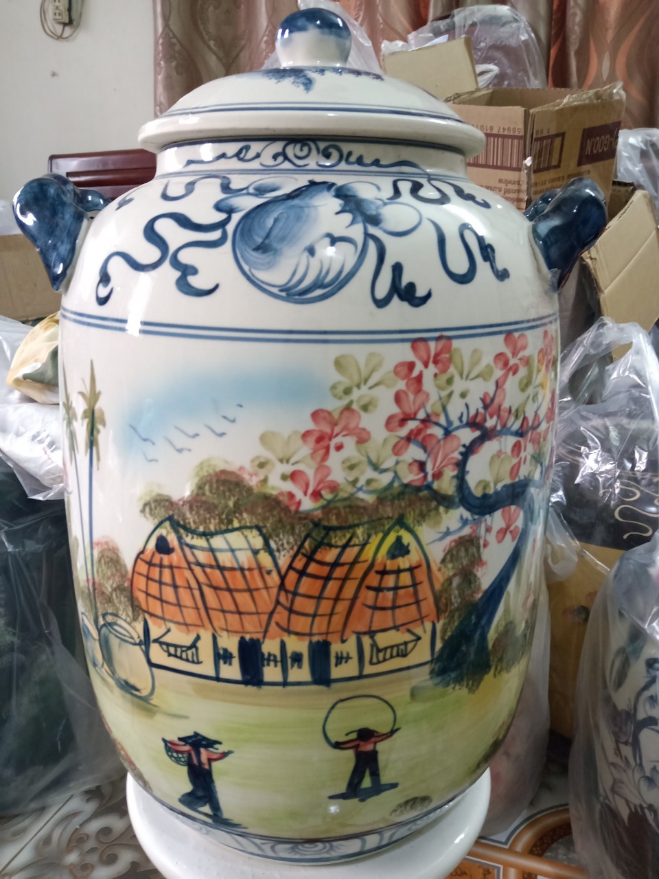 Hũ đựng rượu gạo vẽ phong cảnh Bát Tràng loại 15L (hoa văn ngẫu nhiên)Hũ đựng rượu gạo vẽ phong cảnh Bát Tràng loại 15L (hoa văn ngẫu nhiên)