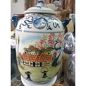 ✨Hũ đựng rượu gạo vẽ phong cảnh Bát Tràng loại 20L (hoa văn ngẫu nhiên)