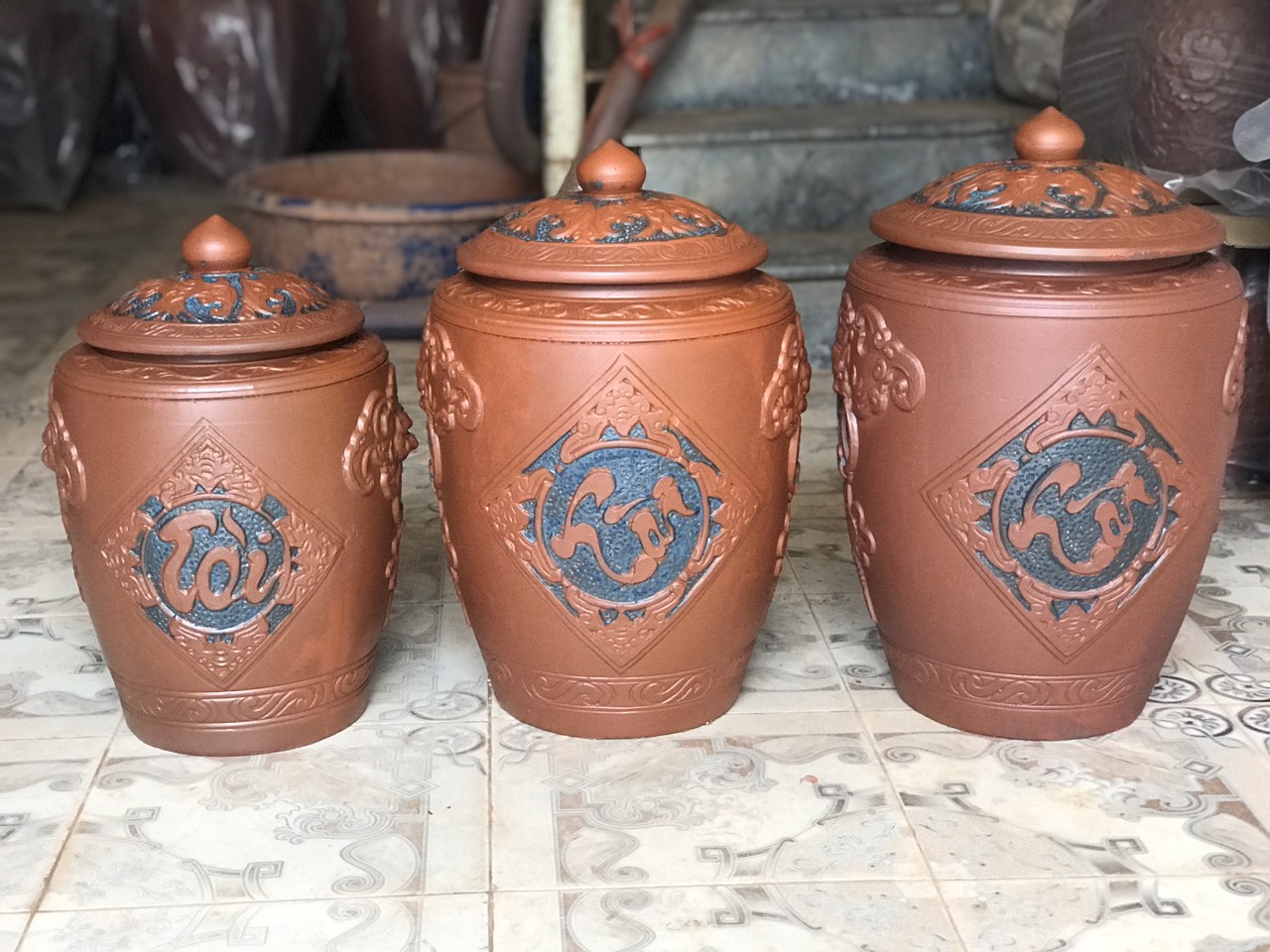 Chum đựng gạo 20kg, Hũ sành đựng gạo 10kg, 20kg, 20kg Tài Lộc phong thuỷ