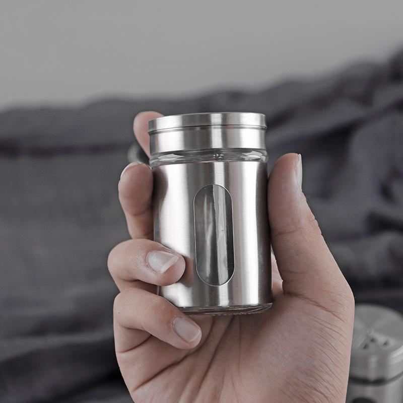 lọ đựng gia vị thủy tinh nắp bật bằng inox