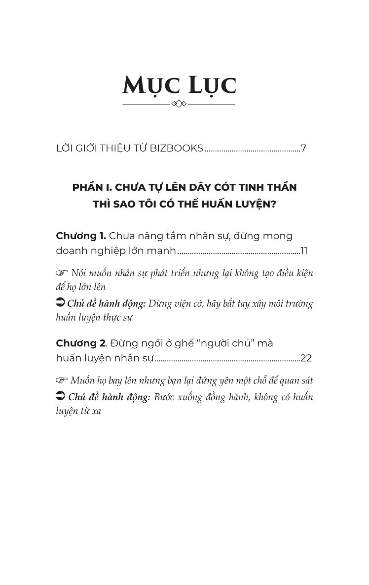 Một chương đặc biệt nhấn mạnh tư duy huấn luyện dài hạn – bạn không chỉ dạy người làm việc, mà còn giúp họ sống có mục tiêu và trưởng thành toàn diện.