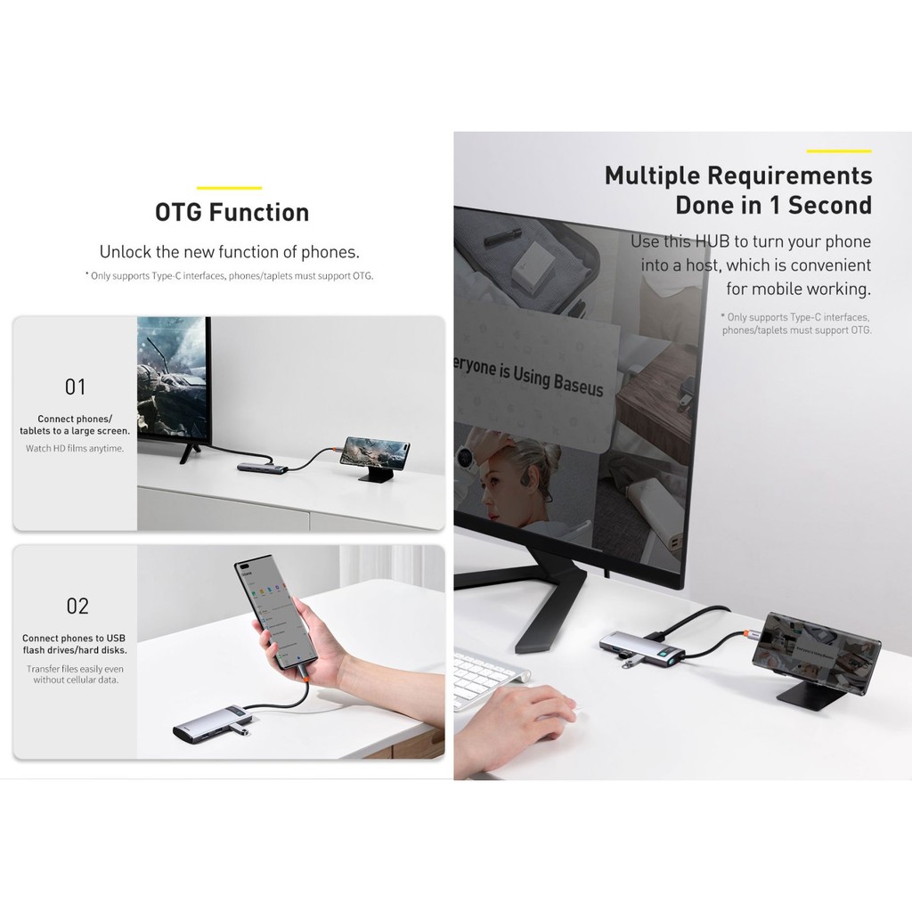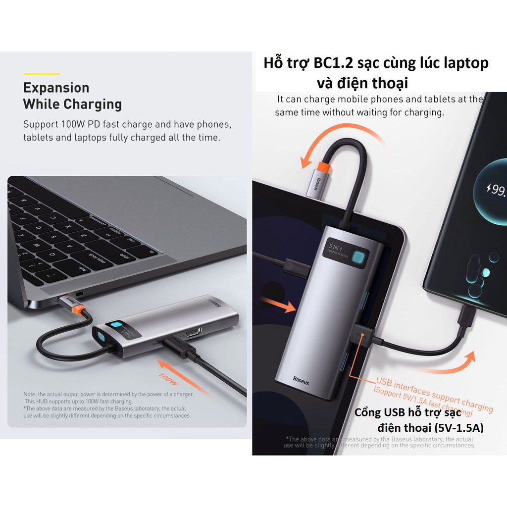 Hub/ Bộ chia Cổng Type-C đa năng 5 trong 1 thương hiệu Baseus, Series: Metal Gleam; Model: CAHUB-CX0G ( LƯU Ý CẦN PHÂN BIỆT VỚI CÁC PHIÊN BẢN 5IN1 CÓ MODEL KHÁC!!!!!! ) -Input: Type- C + Hỗ trợ OTG ( Điện thoại phải có OTG) -Output: