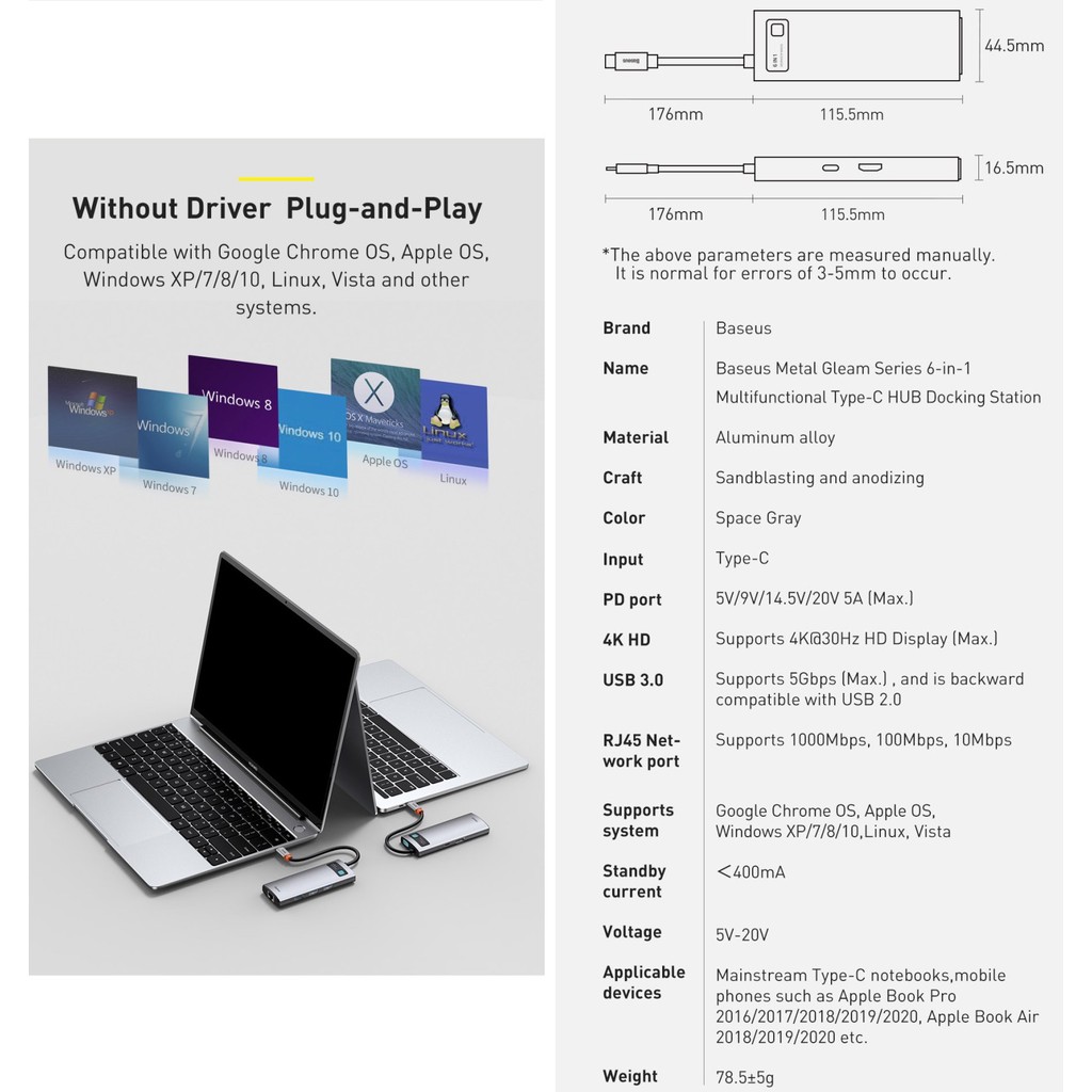Bộ Hub mở rộng 6 in 1 Baseus Metal Gleam