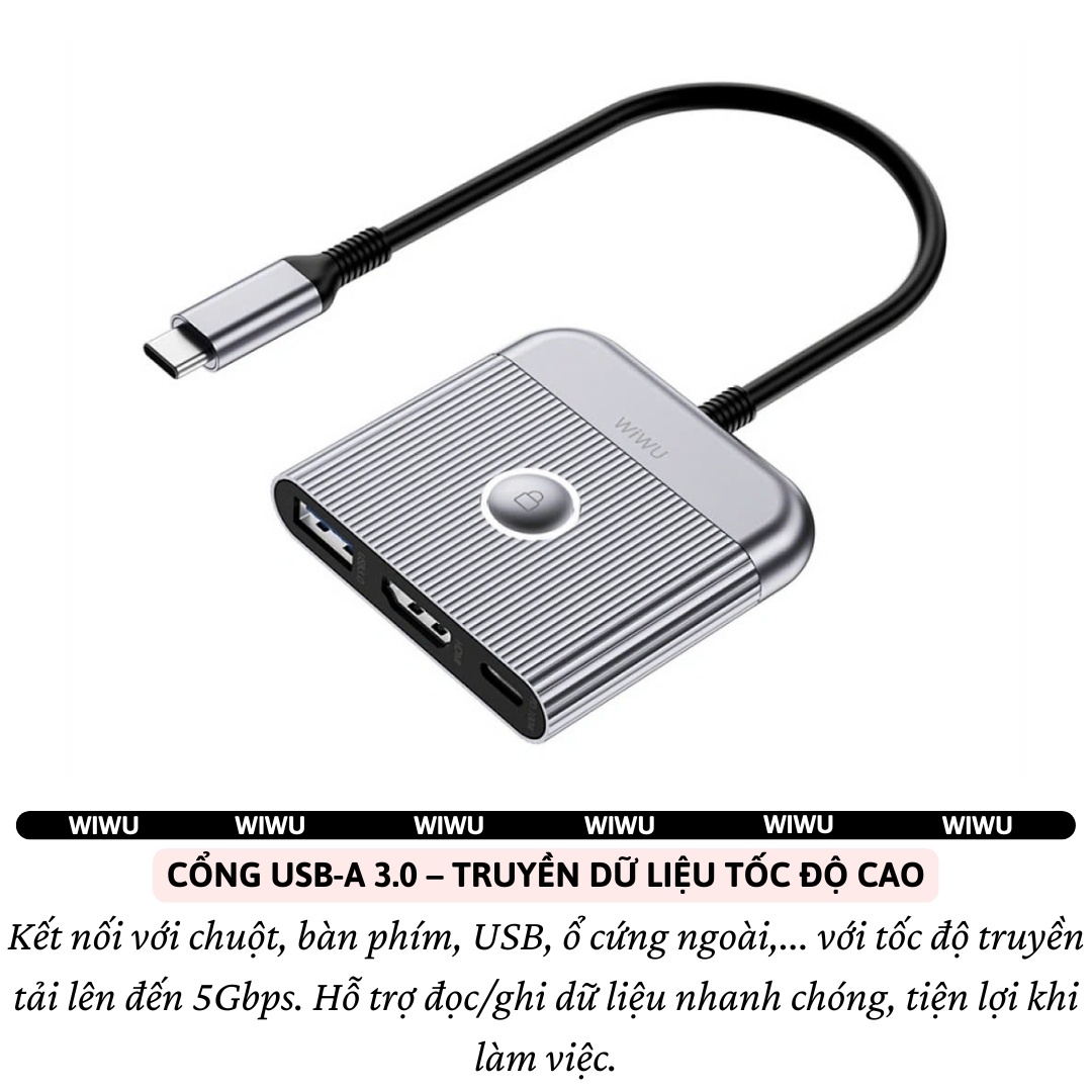 ✨Hub chuyển đổi chia cổng Type-C chia cổng 3in1 HDMI 4K@60Hz + PD 100W Type-C + USB 3.0 hiệu WIWU Travel Docking cho Macbook Laptop cho iPhone - Hợp kim nhôm nguyên khối, KẾT NỐI CHUYÊN NGHIỆP CHO DÂN VĂN PHÒNG & NGƯỜI HAY DI CHUYỂN - Hàng nhập khẩu