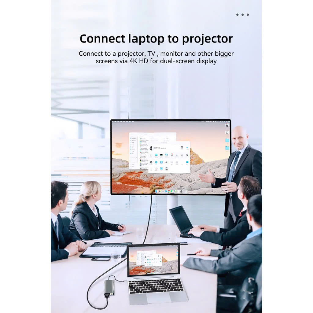 MÔ TẢ SẢN PHẨM Cổng loại C 11 trong 1: Tương thích HDMI + USB3.0 * 1 + USB2.0 * 3 + PD 87W + TF + SD + 100M RJ45 + AUX +