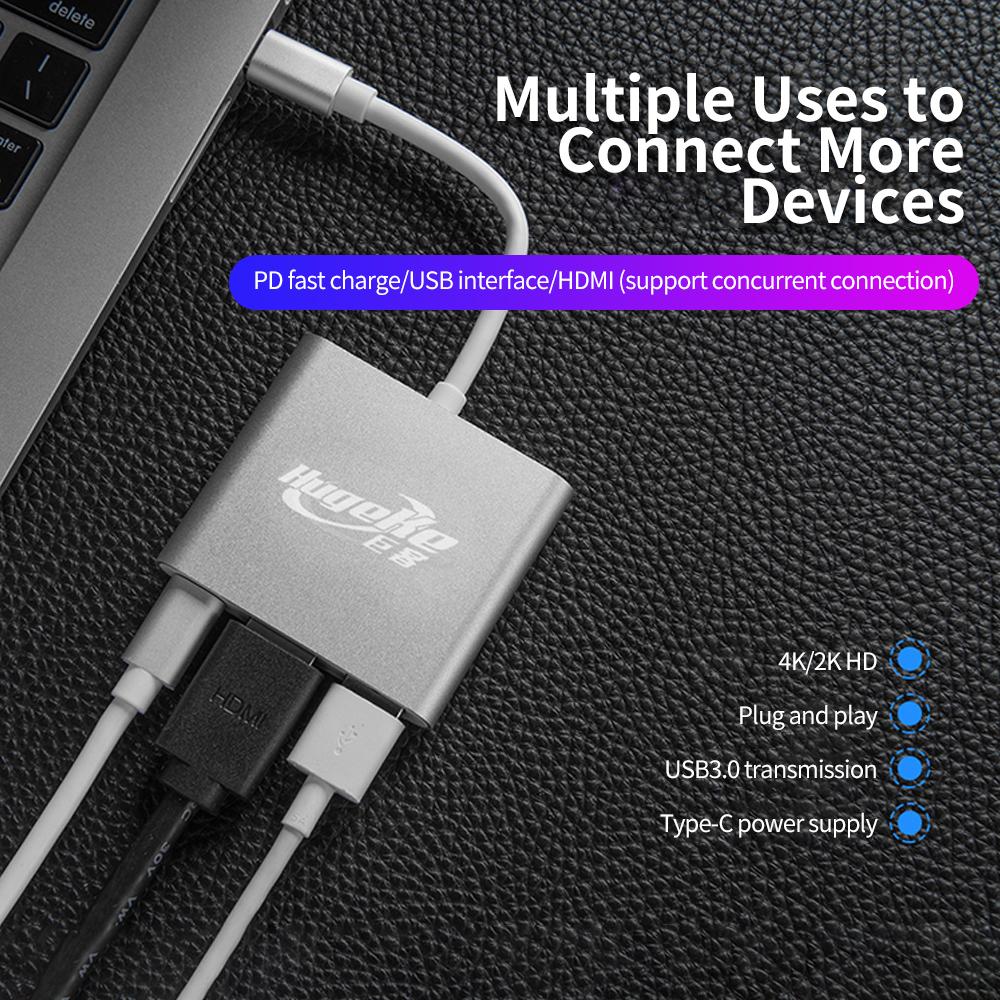 ✨Hugeke Trung tâm mở rộng 3 trong 1 Type-C Bộ chuyển đổi USB C sang HD / USB3.0 / PD Bộ chuyển đổi 4K / 2K Thay thế cho Mac / Huawei / Samsung