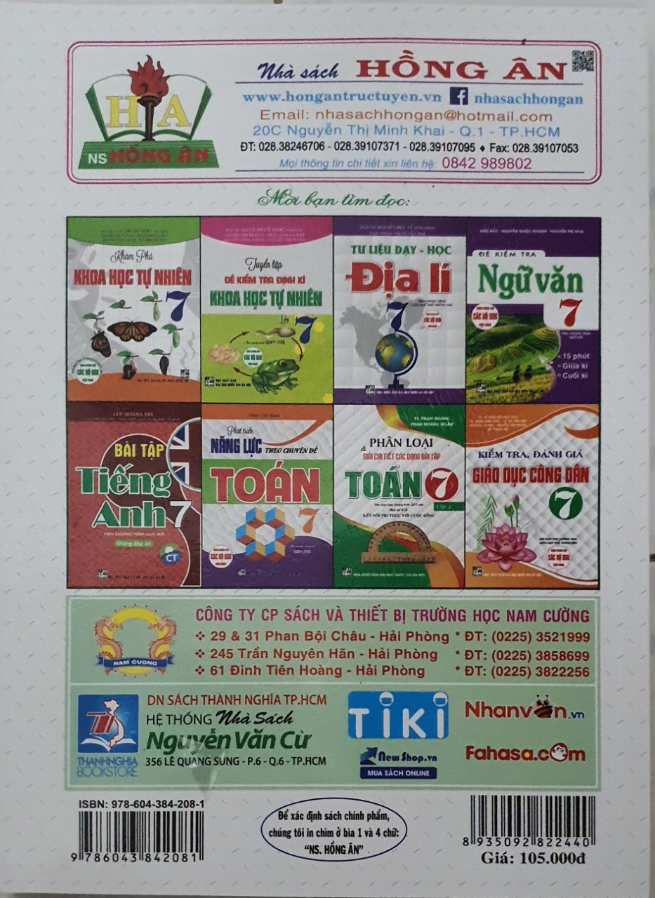 Nhà xuất bản : Đại Học Quốc Gia hà Nội Trang : 272 Năm xuất bản : 2022 Tác giả : nhiều tác giả   Nhà phát hành : Nhà sách hồng ân Sách - Hướng Dẫn Trả Lời Câu Hỏi Và Bài Tập Khoa Học Tự Nhiên Lớp 7 ( Dùng Kèm SGK Chân Trời ) Cuốn sách sẻ hệ thống lại kiến thức trọng tâm cần nhớ để học sinh hiểu được nội dung bài học , tiếp đó sẻ huwongs dẫn hoặc gợi ý các em trả lời câu hỏi của bài học . Với mong muốn các em có khả năng tư duy , sáng tạo, nhằm phát huy tính tìm tòi, khám phá của học sinh chủ đề 1: nguyên tử - nguyên tố hóa học - sơ lược về bảng tuần hoàn nguyên tố hóa học chủ đề 2 : Phân tử chủ đề 3 : tốc độ chủ đề 4 : âm thanh chủ đề 5 : ánh sáng chủ đề 6: từ chủ đề 7 : trao đổi chất và chuyển hóa năng lượng ở sinh vật chủ đề 8: cảm ứng ở sinh vật và tập tính ở động vật chủ đề 9: sinh trưởng và phát triển ở sinh vật chương 10 : sinh sản ở sinh vật chương 11: cơ thể sinh vật là 1 thể thống nhất