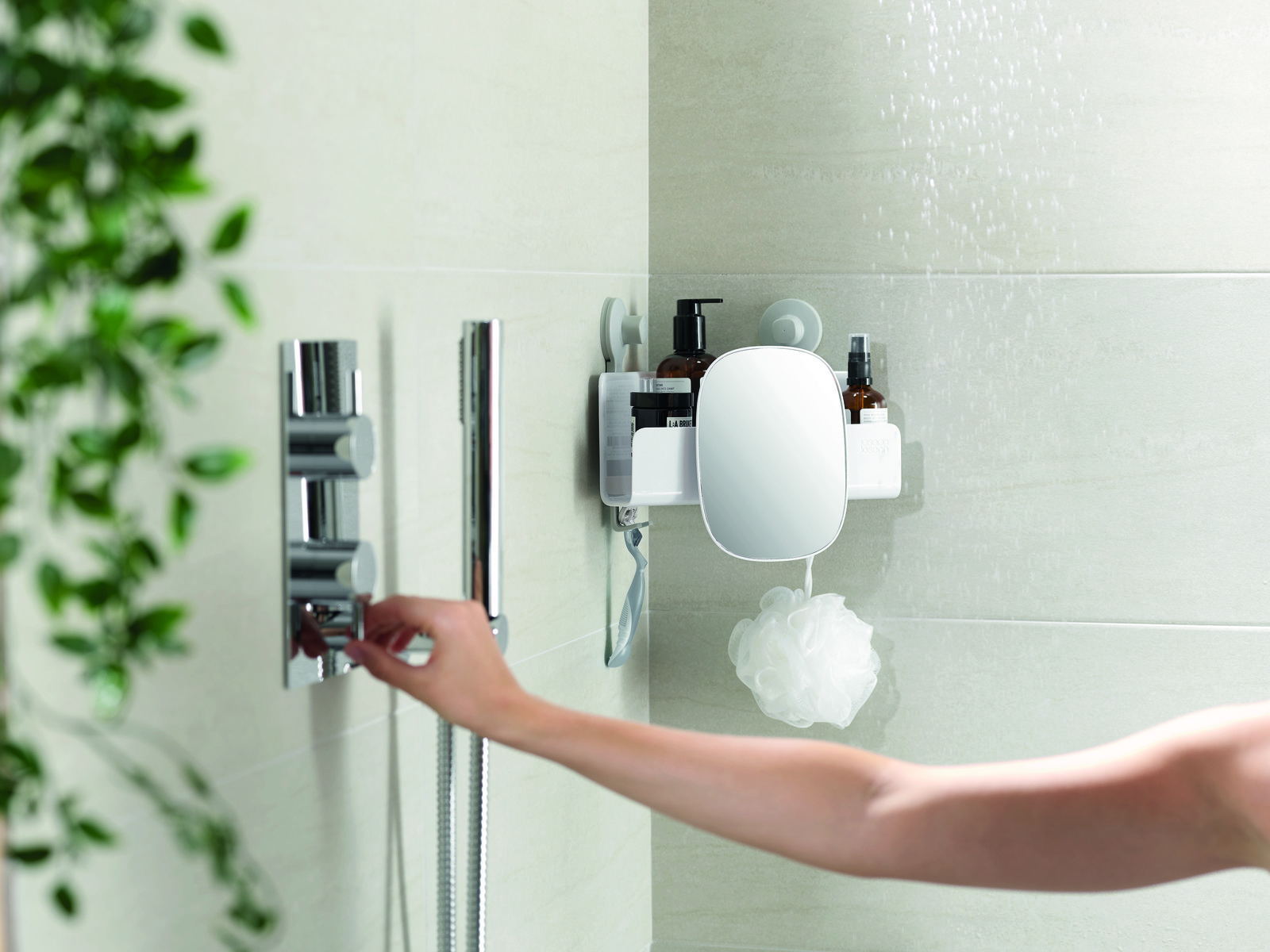 ✨Joseph Joseph - Kệ đựng đồ góc nhà tắm có gương cao cấp EasyStore Corner Shower Shelf with Removable Mirror 988376