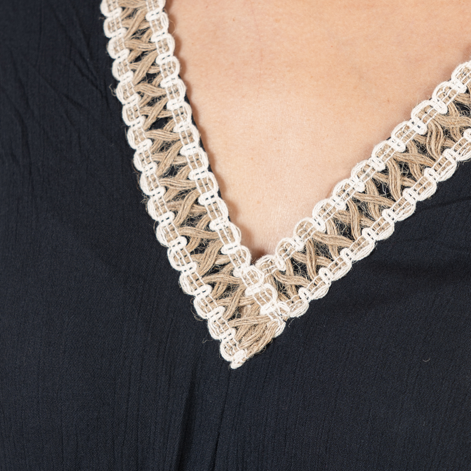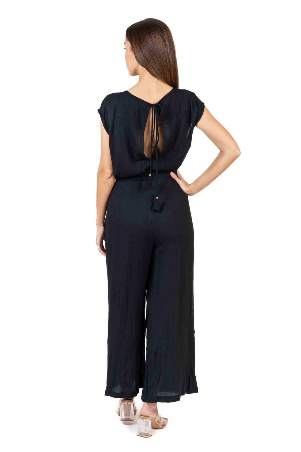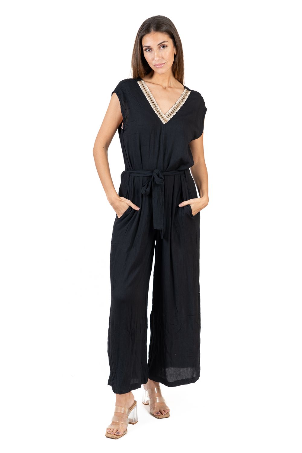 Jumpsuit Cổ V Kết Kim Loại Cotton Isla Bonita, chất liệu cotton cao cấp, mềm mại, nổi bật phần tay kết kim loại tinh tế. Có túi 2 bên. Ống quần xòe rộng. Bo thun
