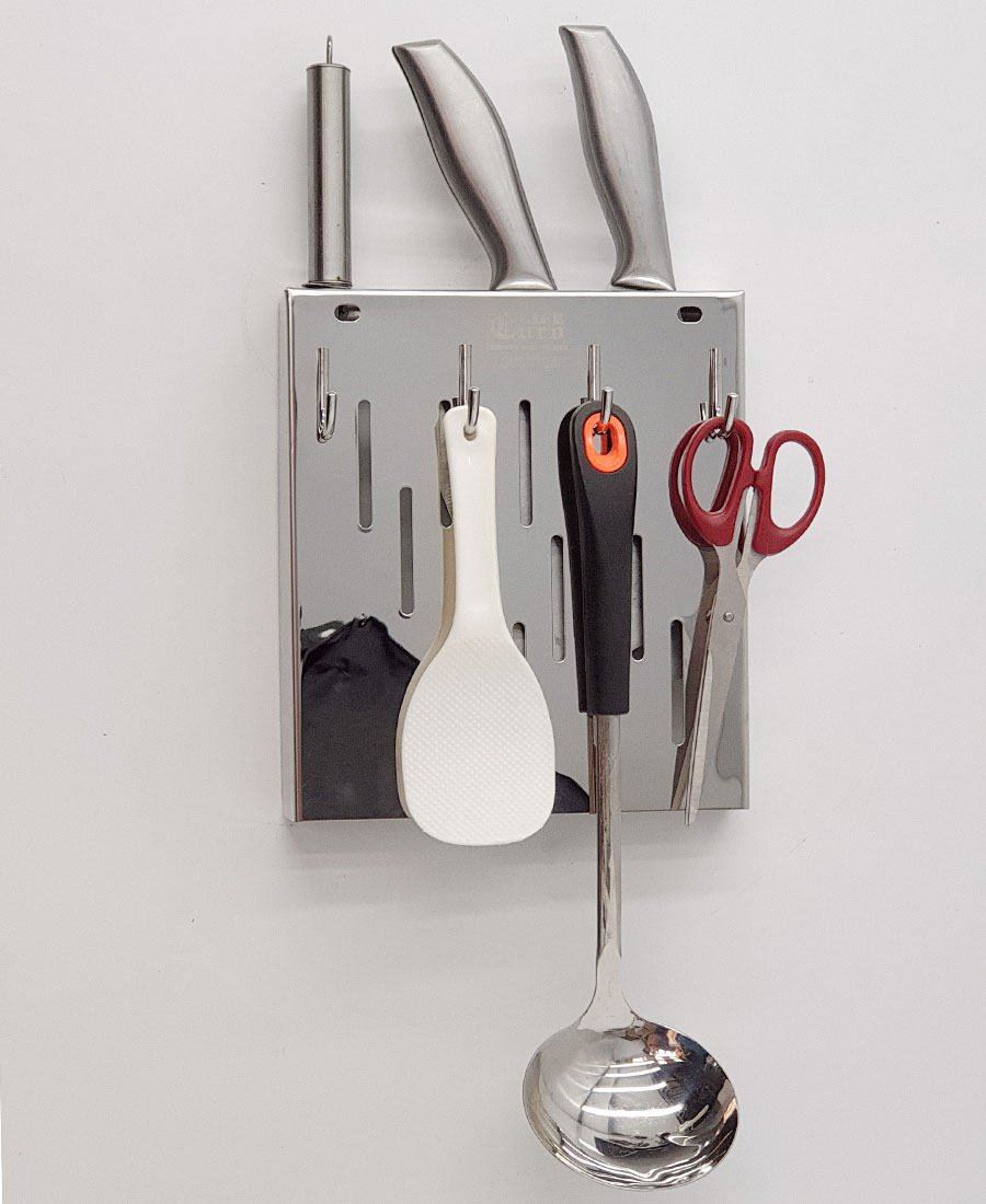 Mô tả chi tiết: Giá treo dụng cụ nhà bếp đa năng giúp bạn sắp xếp gọn gàng các vật dụng như dao, kéo, muỗng, thìa, phới lồng, bàn chải rửa chén, và nhiều loại