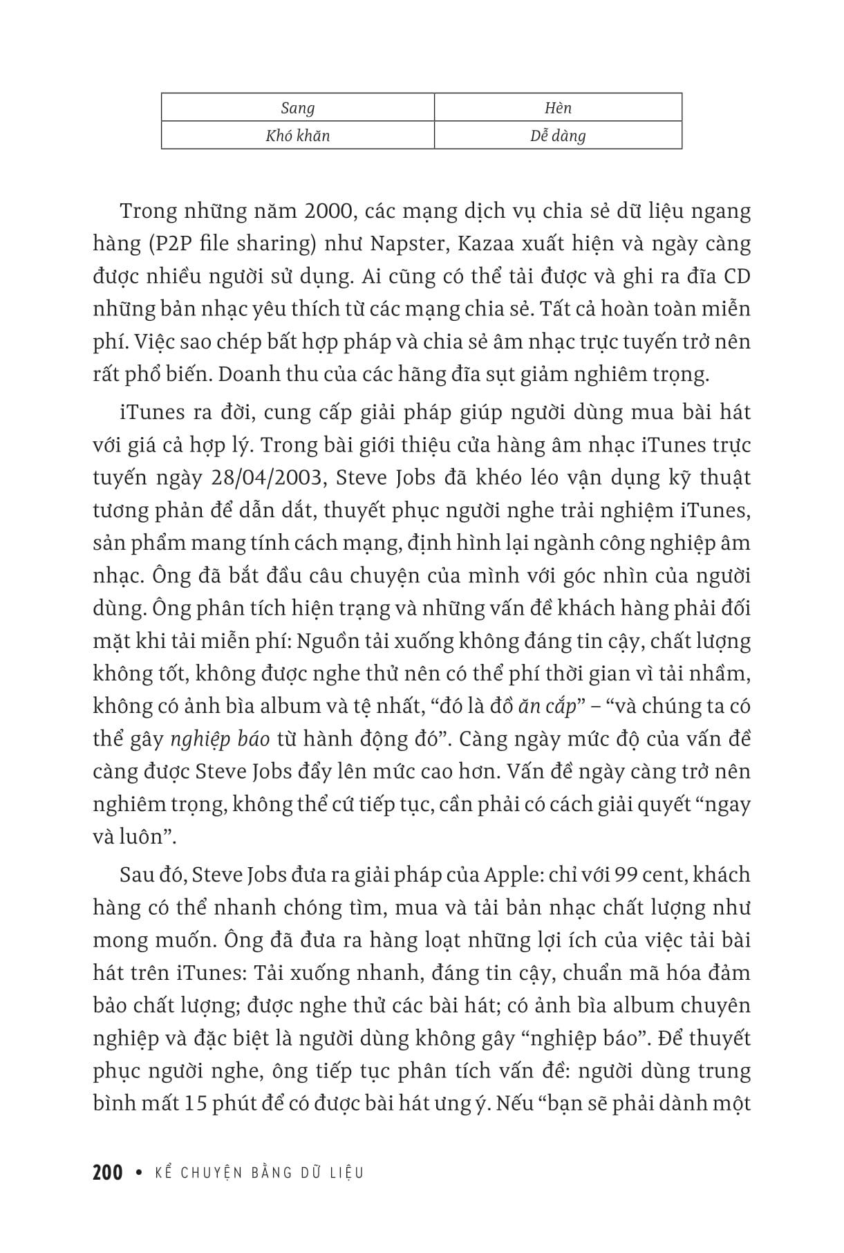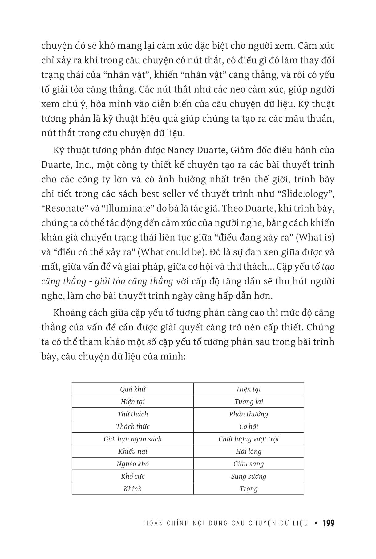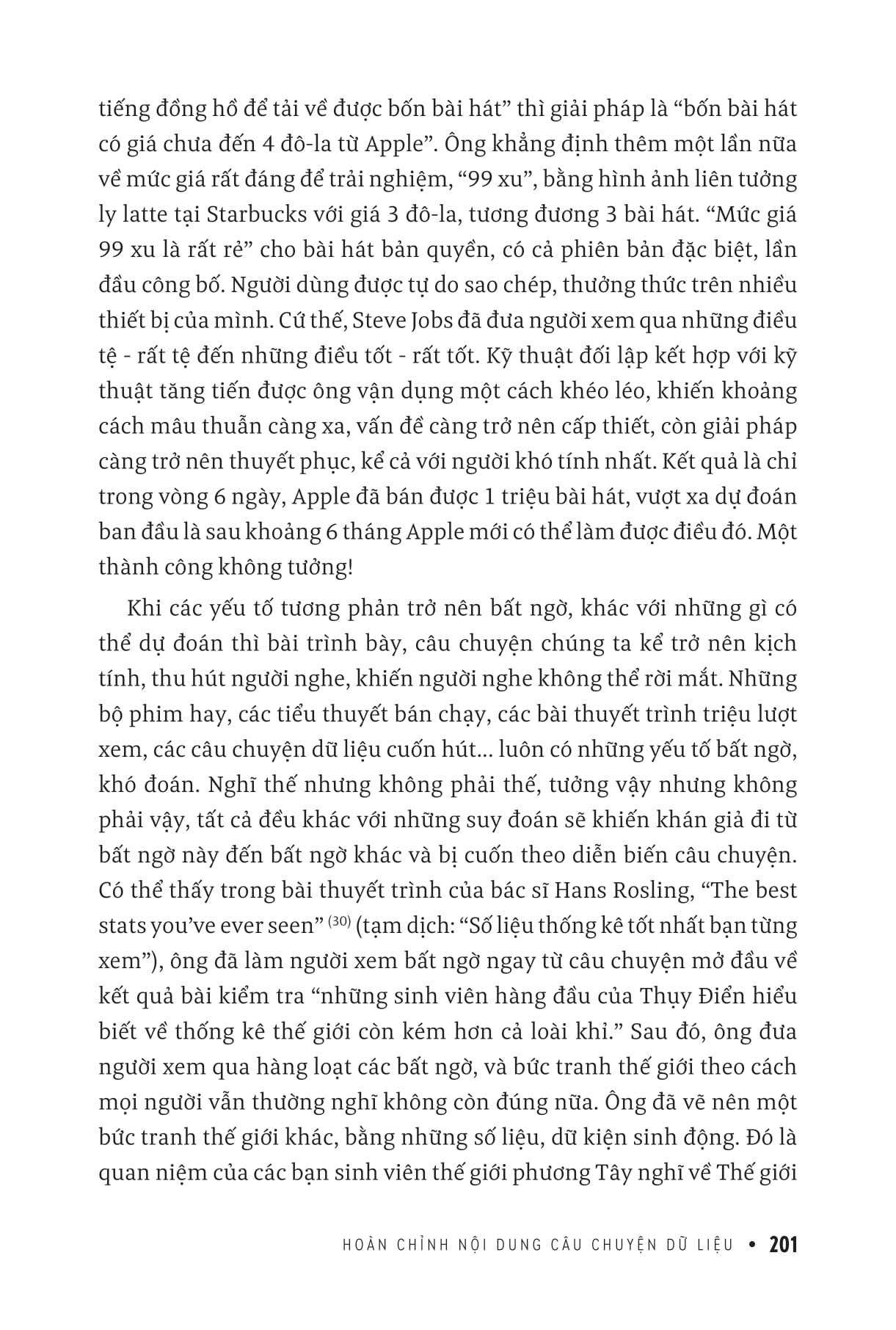 Mỗi ngày chúng ta tiếp xúc với rất nhiều dữ liệu, nhưng không phải ai cũng biết cách nhìn ra "câu chuyện" ẩn giấu trong đó. Những ai nhìn ra sẽ có cơ hội thành công lớn hơn. Tác giả dùng rất nhiều ví dụ từ các công ty lớn như Netflix, A cho đến các sự kiện trên báo chí, để giúp bạn đọc rút ra câu chuyện từ dữ liệu.