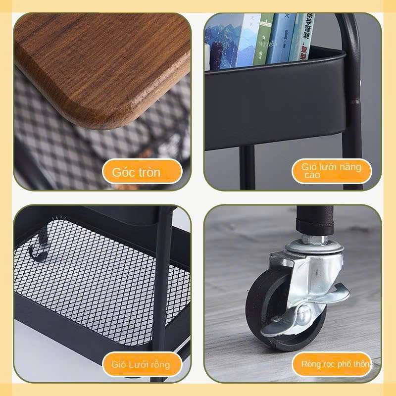 Kệ Để Đồ 3 Tầng Có Bánh Xe – Mặt Gỗ, Khung Sắt Sơn Tĩnh Điện – Kệ Đẩy Đa Năng Cho Nhà Bếp, Phòng Khách, Phòng Ngủ Mô tả chi tiết sản phẩm: THÔNG SỐ KỸ THUẬT: