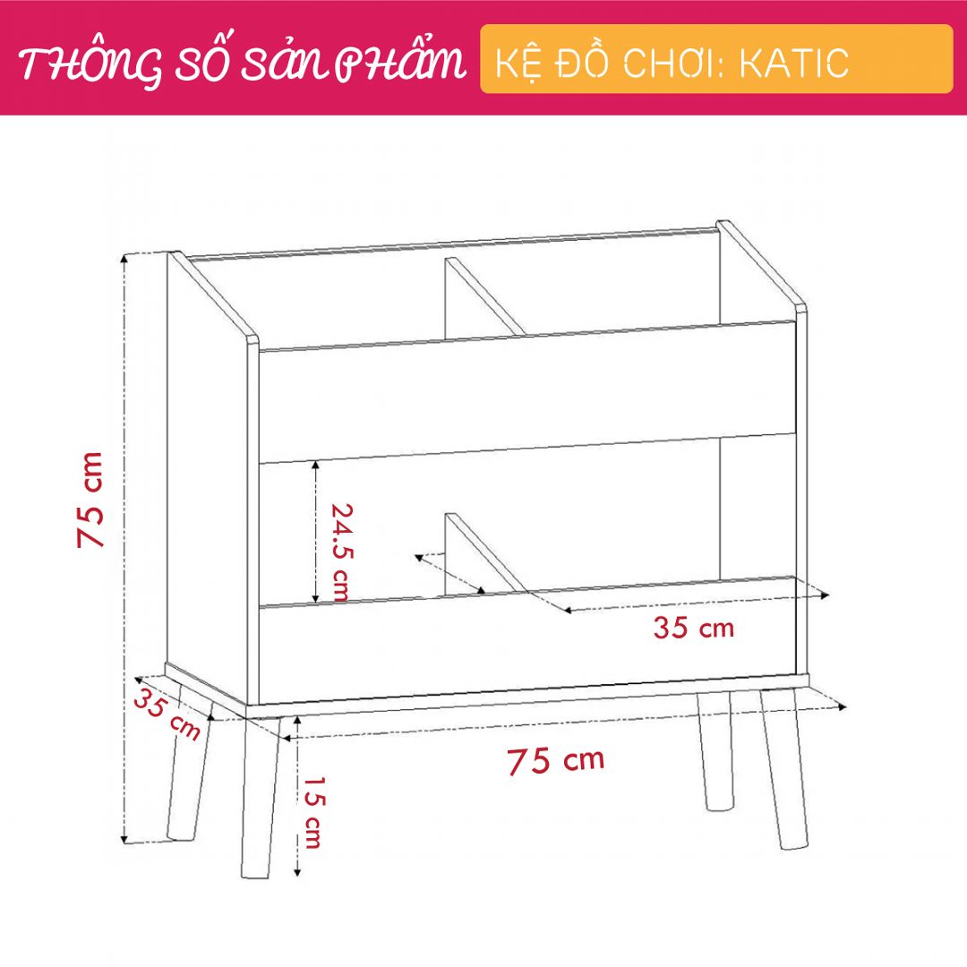 Kệ để đồ chơi cho bé SMLIFE Katic là giải pháp hoàn hảo cho những ai đang đau đầu về việc nhà diện tích nhỏ nhưng luôn tràn ngập với các món đồ chơi của con trẻ. Kệ đồ chơi SMLIFE được thiết kế đơn giản nhưng rất tinh tế giúp bạn tổ chức các món đồ chơi, sách vở của bé gọn gàng và nhanh chóng. Sản phẩm được thiết kế với độ cao vừa phải giúp các bé dễ dàng lấy và sắp xếp lại các món đồ chơi mà không phải leo trèo. Sản phẩm hiện đang được bán với mức giá vô cùng phải chăng, có tính cạnh tranh cao. ĐẶC ĐIỂM SẢN PHẨM: