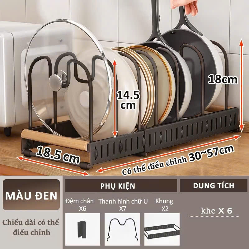 • Chức năng: Giá úp nồi chảo, tiết kiệm không gian, có thể điều chỉnh độ dài