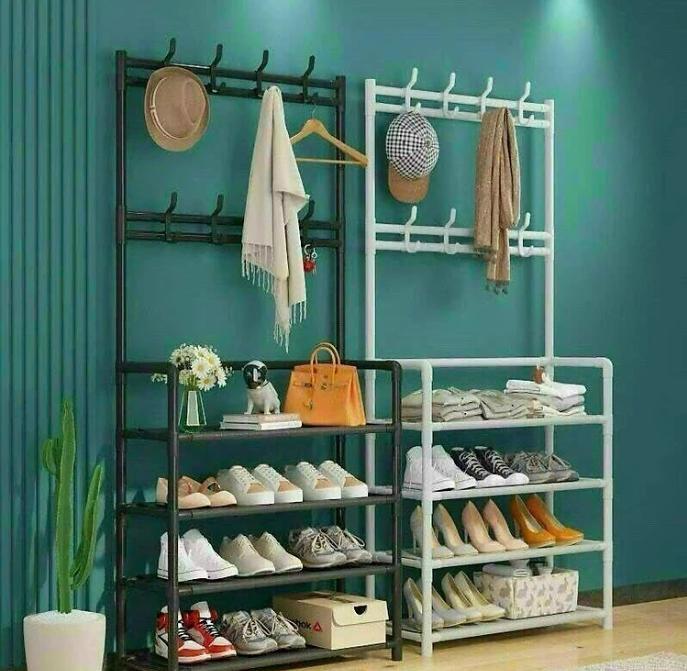 Xem ngay Giá Kệ để giày dép đa năng 4 tầng thông minh có 8 móc treo quần áo tiện ích với giá ₫79.000