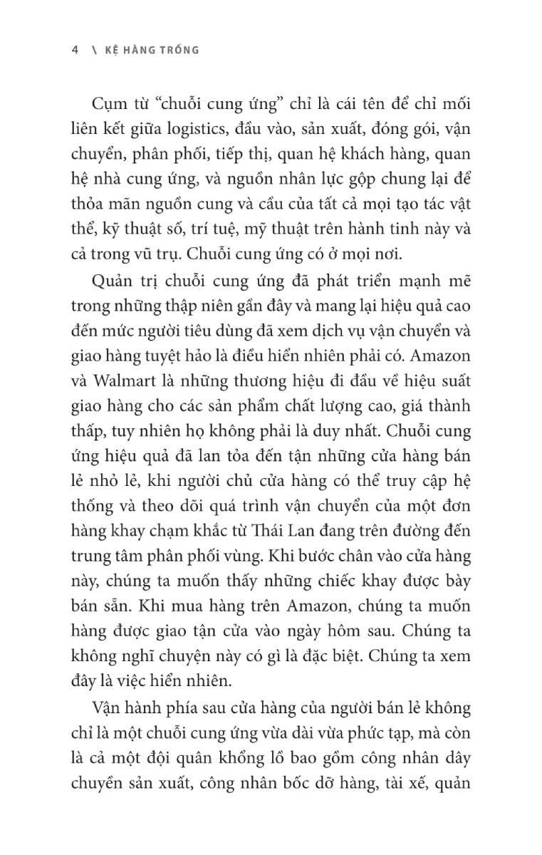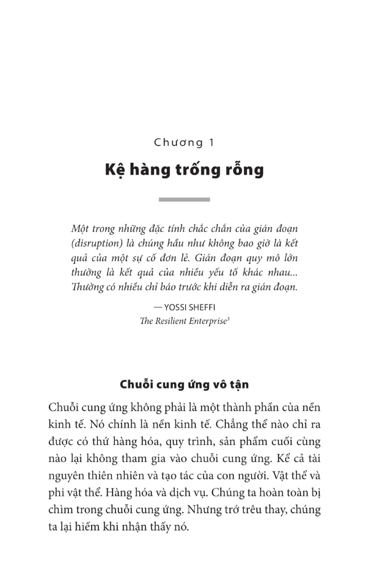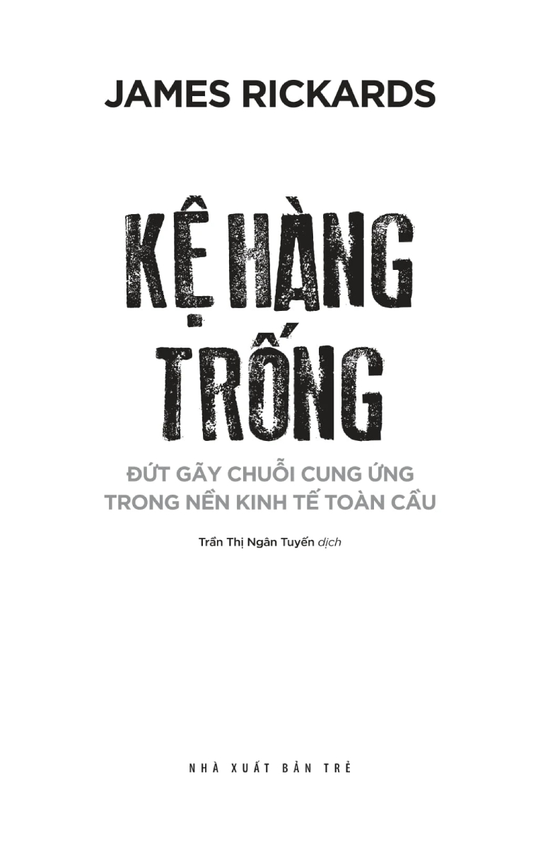Mua tại TiktokKệ Hàng Trống - Đứt Gãy Chuỗi Cung Ứng Trong Nền Kinh Tế Toàn Cầu GIỚI THIỆU SÁCH: Khủng hoảng chuỗi cung ứng đang đến hồi khốc liệt. Những sản phẩm bạn yêu thích không còn xuất hiện trên kệ hàng nữa: nó còn đang mắc kẹt đâu đó giữa Thái Bình Dương. Tình trạng gián đoạn chuỗi cung ứng này sẽ thế nào trong sáu tháng, hay thậm chí là ba năm nữa? Chúng ta vẫn kỳ vọng rằng các hành động phục hồi kinh tế và đời sống sau dịch bệnh sẽ giúp tháo gỡ các vấn đề này, nhưng thực tế là tiền số và mạng xã hội sẽ chẳng thể giải quyết được các vấn đề muôn thuở trong việc vận chuyển hàng hóa xuyên đại dương từ châu lục này đến châu lục khác. Theo James Rickards, sự bất mãn của người tiêu dùng trước tình trạng thiếu thốn hàng hóa chỉ là phần chóp của một tảng băng vô cùng lớn đang đe dọa nền kinh tế toàn cầu, Trong Kệ Hàng Trống, Rickards chia sẻ những dự đoán của bản thân ông về một nền kinh tế mới sau dịch bệnh, đồng thời chỉ cách cho người tiêu dùng và chủ doanh nghiệp đón đầu những khủng hoảng sắp tới. Bạn sẽ hiểu tại sao tình trạng thiếu năng lượng ở Trung Quốc có thể làm gián đoạn cả một ngành công nghiệp sản xuất thép, tại sao lạm phát sẽ nhanh chóng biến thành giảm phát, và mức chi tiêu của người tiêu dùng sẽ giảm mạnh do thuế cao, nợ chồng chất, và tình trạng thất nghiệp ngày càng lan rộng. Cuối cùng, tác giả nhìn vào tương lai của tiền tệ, một tương lai rất có thể sẽ không còn đồng đô la nữa. Nền kinh tế toàn cầu sẽ đối mặt với nhiều thử thách trong tương lai gần, và việc chúng ta chìm hay nổi trong cơn sóng dữ phụ thuộc vào việc ta tự trang bị cho mình tốt đến đâu và làm những gì để ngăn chặn cuộc sụp đổ sắp tới.