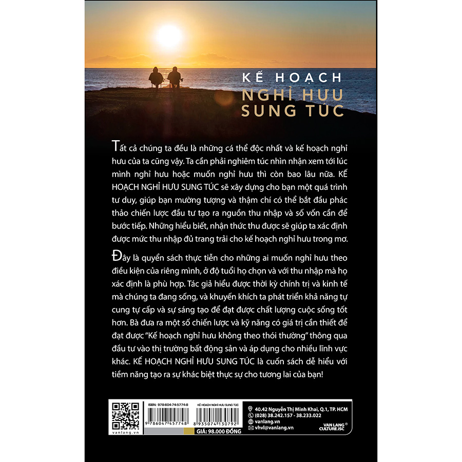Đây là quyển sách thực tiễn cho những ai muốn nghỉ hưu theo điều kiện của riêng mình, ở độ tuổi họ chọn và với thu nhập mà họ xác định là phù hợp. Tác giả hiểu được thời kỳ chính trị và kinh tế mà chúng ta đang sống, và khuyến khích ta phát triển khả năng tự cung tự cấp và sự sáng tạo để đạt được chất lượng cuộc sống tốt hơn. Bà đưa ra một số chiến lược và kỹ năng có giá trị cần thiết để đạt được “Kế hoạch nghỉ hưu không theo thói thường” thông qua đầu tư vào thị trường bất động sản và áp dụng cho nhiều lĩnh vực khác. KẾ HOẠCH NGHỈ HƯU SUNG TÚC là cuốn sách dễ hiểu với tiềm năng tạo ra sự khác biệt thực sự cho tương lai của bạn!