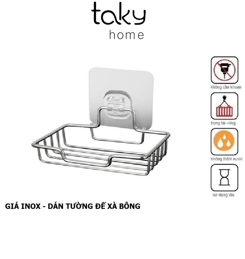 Giá Inox Để Xà Bông Dán Tường Phòng Tắm - Sản phẩm tiện dụng trong phòng tắm, giúp bánh xà bông luôn khô ráo, Sản phẩm có miếng dán tường chắc chắn, không khoan đục, Kệ Inox 304 Sáng Bóng tạo vẻ sang trọng và chắc chắn. TakyHome