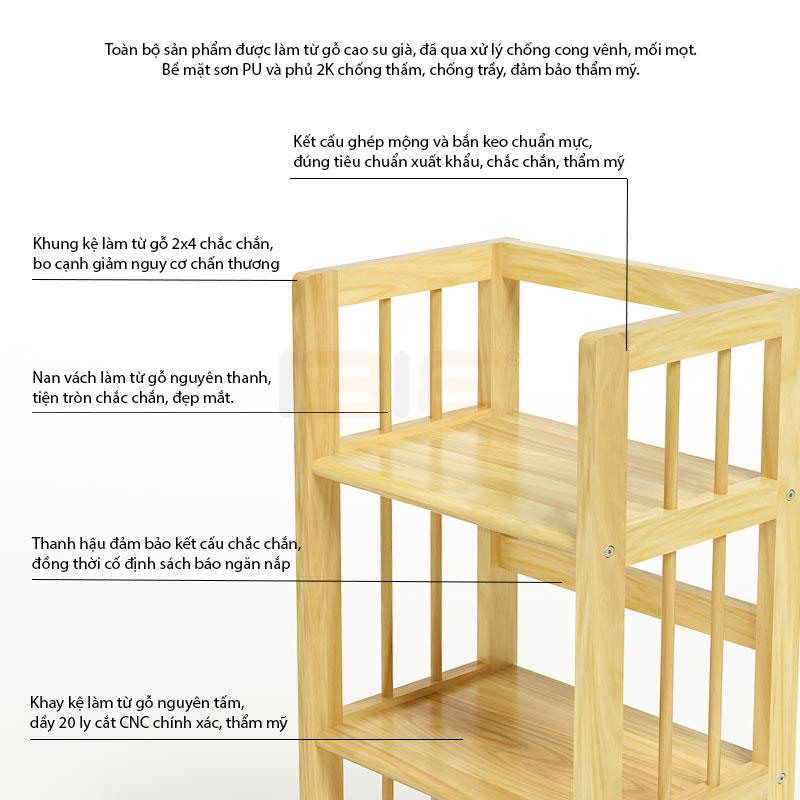Thương hiệu: [IBIE]; Chất liệu chính: [Gỗ cao su]; Màu sắc: [Màu tự nhiên]; Thời hạn bảo hành: [12 tháng]; Thời gian giao hàng: [1-3 ngày]; Phòng chính: [Phòng làm việc]; Yêu cầu lắp đặt: [Có]; Tình trạng tồn kho: [Có sẵn]; Phong cách: [Scandinavian]; Hoàn thiện: [Sơn PU]; Kích thước (mm): [900 x 280 x 900]; Xuất xứ: [Việt Nam]; Đơn vị tính: [Cái]; Kiểu dáng: [3 tầng]GIỚI THIỆU SẢN PHẨM: