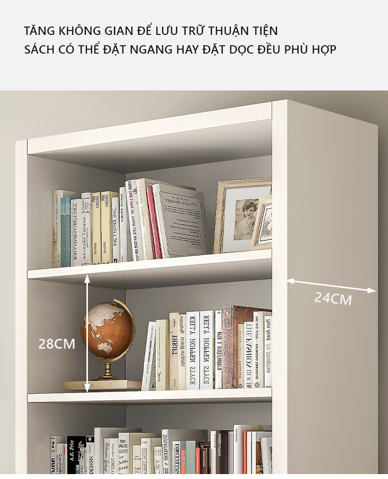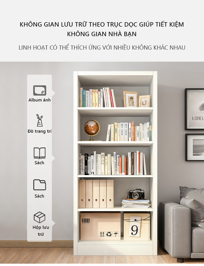 ️Kích thước: 3 ngăn: Cao x Rộng x Sâu = 80 x 60 x 24 cm 4 ngăn: Cao x Rộng x Sâu = 112 x 60 x 24 cm 5 ngăn: Cao x Rộng x Sâu = 136 x 60 x 24 cm ️Chất liệu: Gỗ Công Nghiệp (Gỗ MDF) nhập khẩu cao cấp chống xước, chống nước ️Màu sắc: Màu Trắng ️Bài trí: lắp đặt tùy vị trí mong muốn: cạnh bàn làm việc, bàn học, để đồ dùng, sách vở, tài liệu, đồ decor,