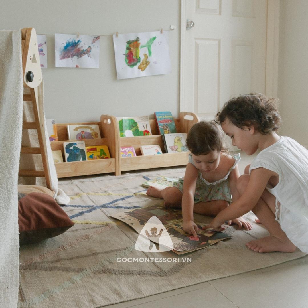 Kệ sách Montessori thúc đẩy tính độc lập thông qua hoạt động tự do lựa chọn.