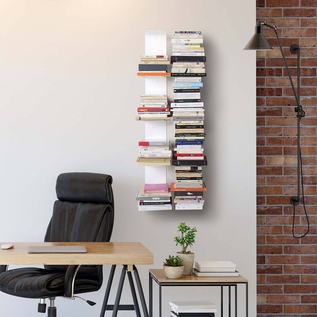 Một trong những lợi ích nổi bật khác khi sử dụng kệ sách đứng đó chính là bạn có thể dễ dàng đọc tiêu đề ở gáy cuốn sách và lựa chọn sách cho mình dễ dàng mà không phải lấy cuốn sách ra hay nghiêng đầu khó khăn. Kệ sách treo tường bằng thép dạng đứng V60 còn có thể sử dụng như một kệ trang trí tô điểm bức tường trống.