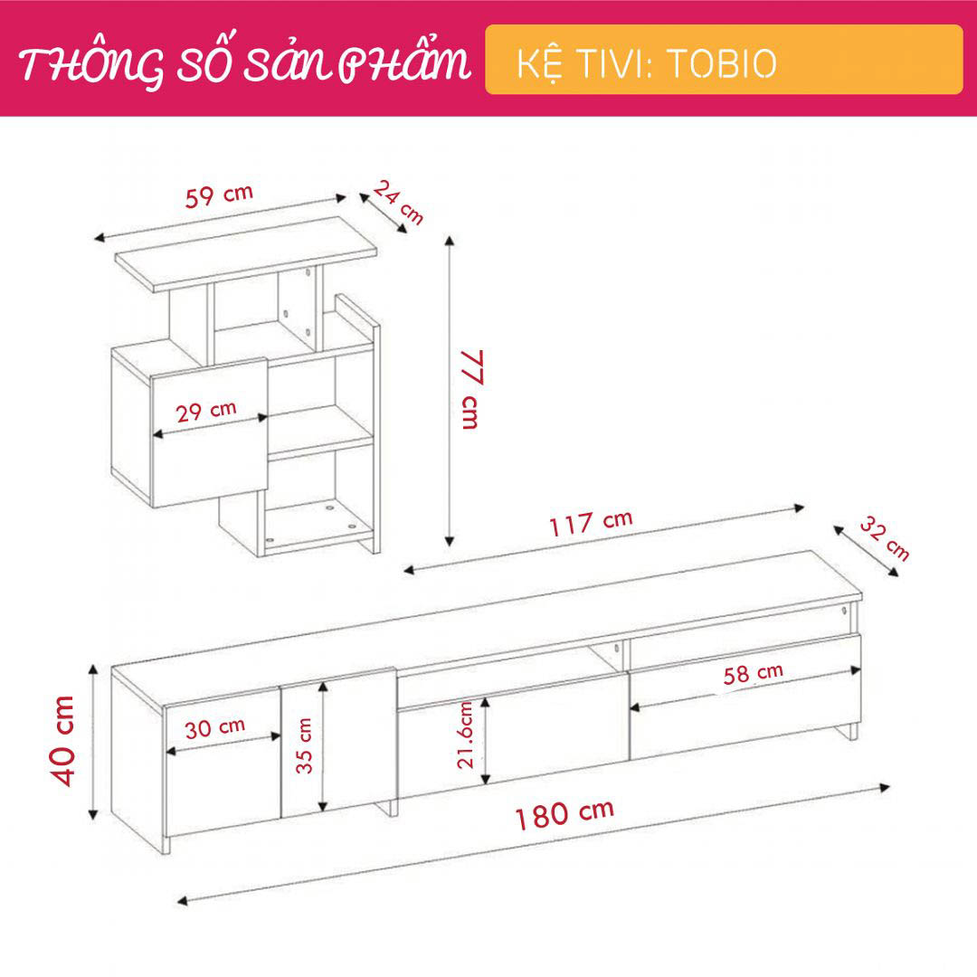 Mua tại TiktokKệ Tivi gỗ SMLIFE Tobio là một sự bổ sung hoàn hảo cho phòng khách của bạn. Kệ Tivi gỗ hiện đại SMLIFE được thiết kế độc đáo mang đến một không gian lớn để lưu trữ các thiết bị điện tử hoặc vật dụng trang trí. Sản phẩm là một giải pháp hoàn hảo cho những căn hộ diện tích nhỏ. ĐẶC ĐIỂM SẢN PHẨM: