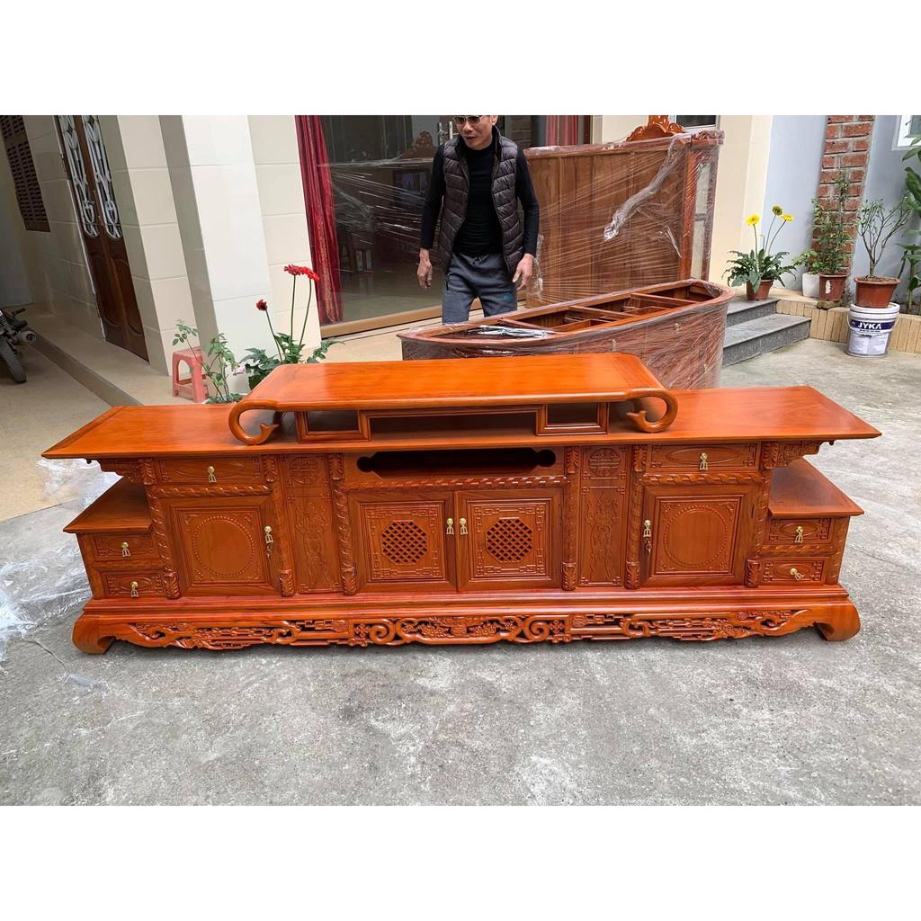 🟢 Kệ tivi hàm ếch chất liệu gỗ gõ đỏ dài 2m4