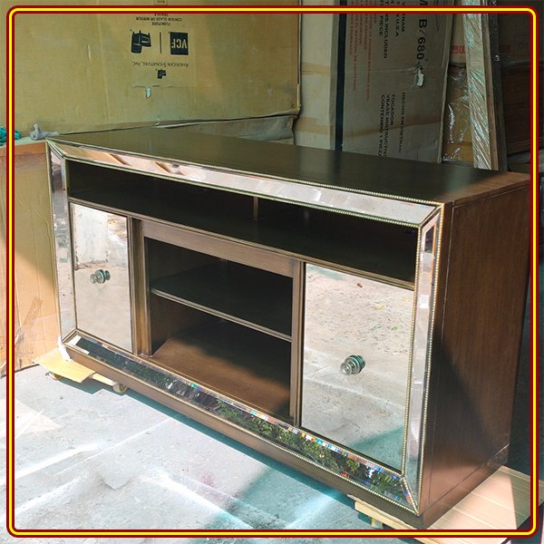 ✨Kệ Tivi kết hợp kính đính đồng Juno Sofa màu trắng gương 163 x 51 x 86 cm